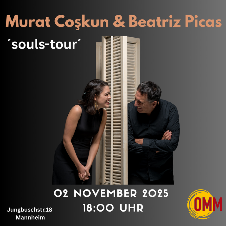 Murat Coşkun und Beatriz Picas verbindet ihre große Leidenschaft für die Musik, die zwischen den Welten und Stilen entsteht. Nach einer erfolgreichen CD-Release-Tour in der Türkei zahlreichen Konzerten in Portugal, der Schweiz und in Deutschland sind die beiden zu einem packenden Duo zusammengewachsen: Picas, deren Stimme mit ihrer individuellen Klangfarbe unmittelbar berührt, geht in der Verbindung von Cello und Vocals einen ganz eigenen Weg. Coşkun beherrscht als Meister seines Faches sein großes Percussion-Instrumentarium so virtuos, dass er sich scheinbar blind und intuitiv in die gemeinsame Musik geben kann.